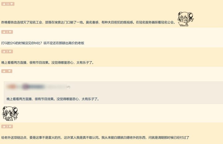 还有一个小瓜就是给老外送项链,这点事情农工也不太好考证,就当做是假的吧,毕竟是吧?所以这次的冠名活动雷火搞的真的很差很差,建议雷火好好优化这些东西的规则,而不是让冠名活动变成吗RMB的战争,如果真的想变成RMB游戏的话,这边建议引入转某和瓜某车,收益说不定更高呢?